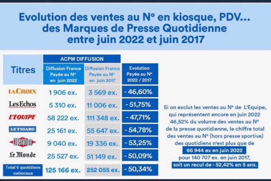 La presse écrite française est à l’agonie, en 5 ans les journaux ont perdu la moitié de leurs ventes en kiosque.