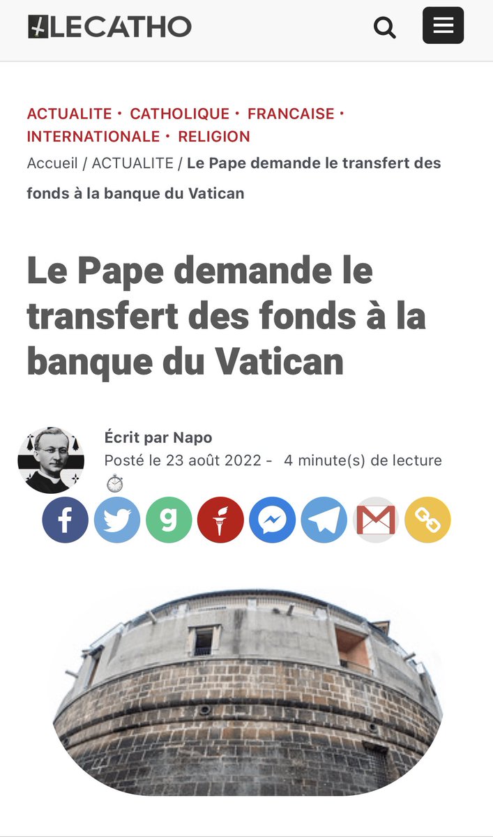 🚨1. Le 23 août 2022 : Le Pape demande de rapatrier les fonds du Saint-Siège dans la banque du Vatican et de lui confier la gestion exclusive du patrimoine