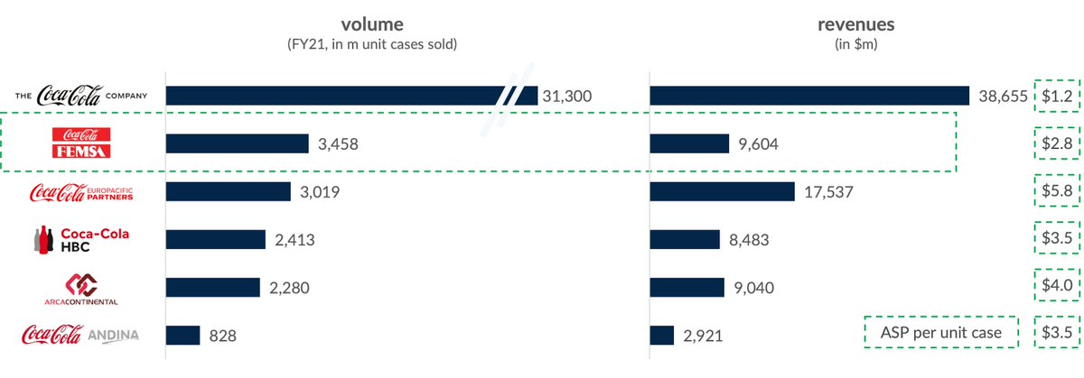 In 2021 the entire Coca-Cola system sold 31.3 bn unit cases and KOF sold 3.5 bn unit cases ($9.6 bn rev)