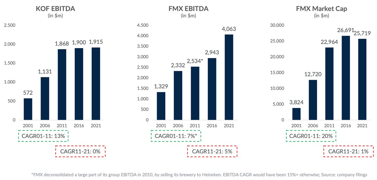 “EXECUTIVE SUMMARY”: Prior to the last decade, FEMSA used to be a high-growth stock delivering strong profit increases and 20% market cap CAGR until 2011/12.