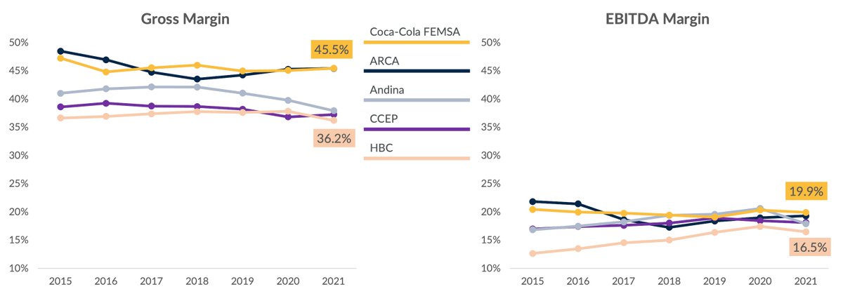 KOF is the most profitable bottler globally with 19.9% FY21 EBITDA margin