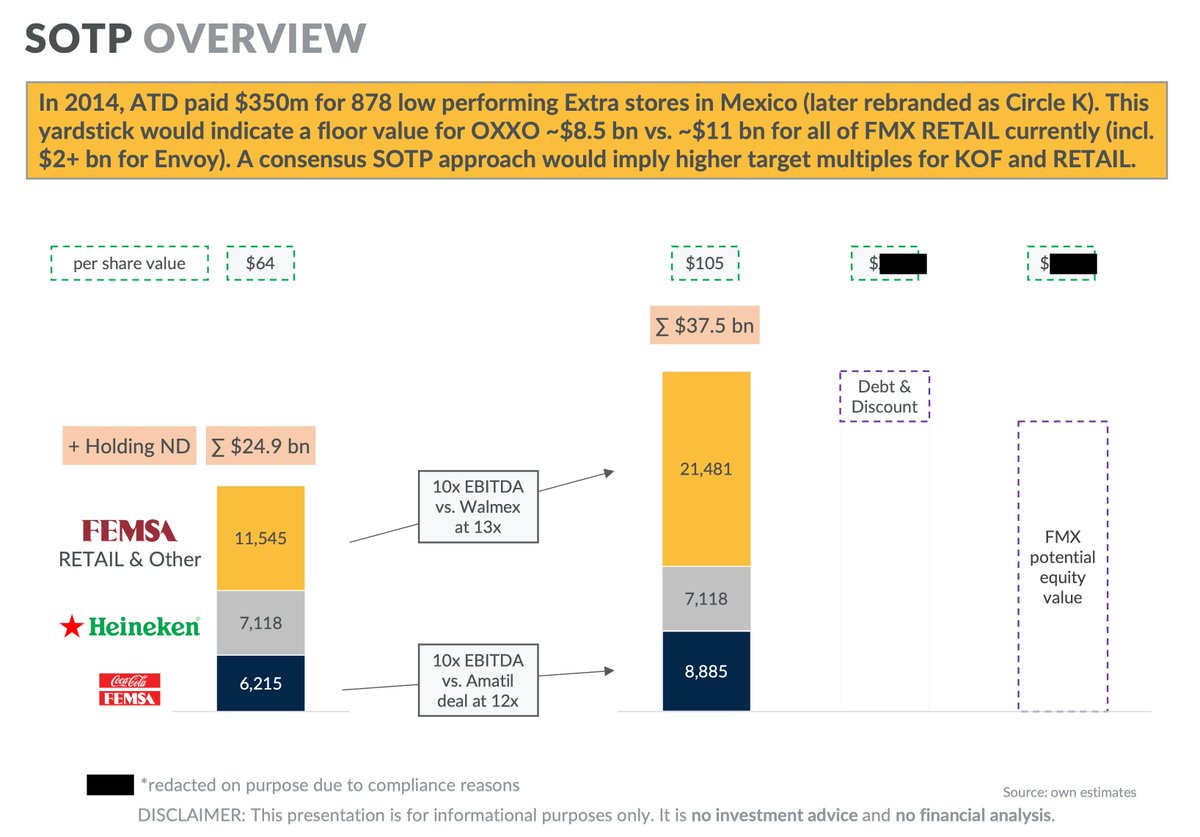 "CONCLUSION": With $FMX trading at historic low multiples ~6x EBITDA, KOF down -65% from peak, it's not hard to see why some brokers see upside in a SOTP valuation.