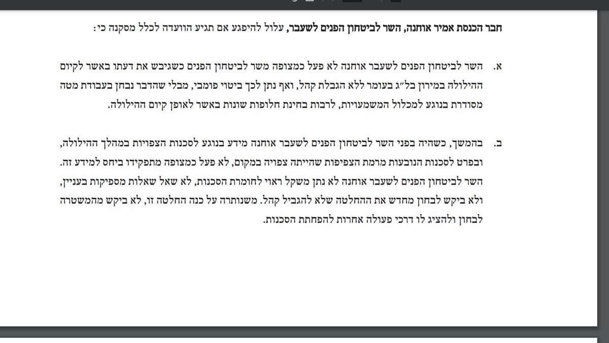 לא ניכנס לצדדים המשפטיים, אלא רק לחוות הדעת הביטחונית המגוחכת והמופרכת.