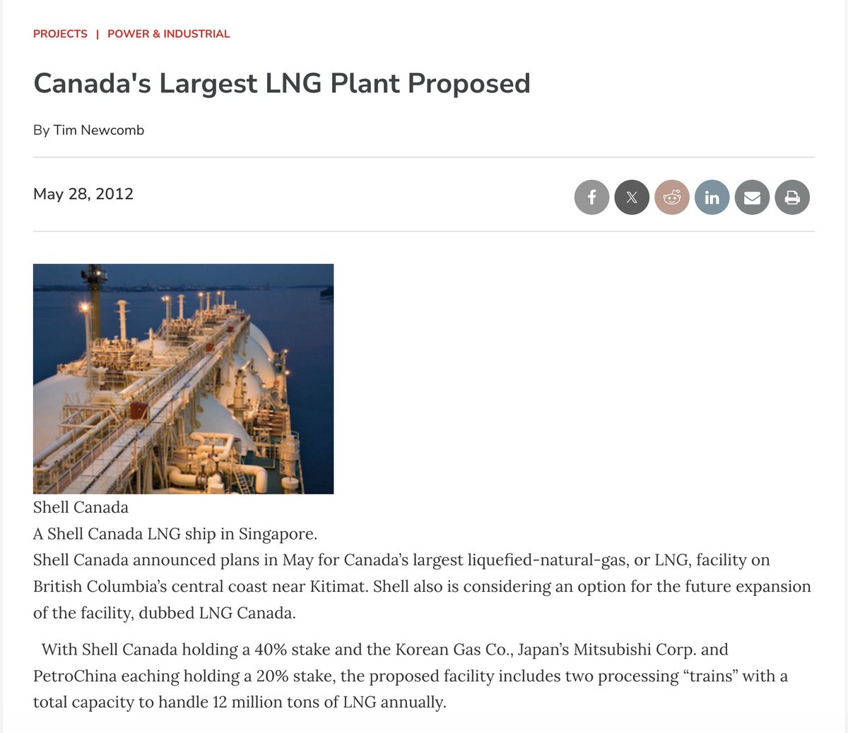 LNG Canada submitted its application to the Harper-era NEB in 2012. It got the necessary approvals in....2015.