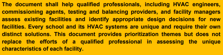 There is a check list on p3 of the document. You can email it to your district / uni facilities department. Esp. those that claim "we meet ASHRAE".