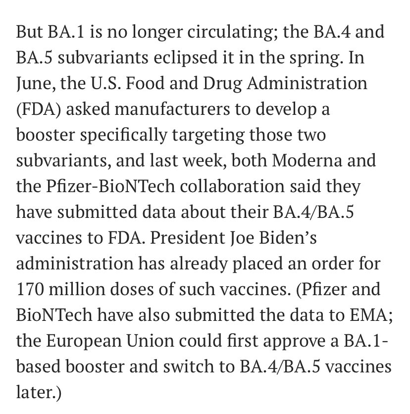 8 Mäuse (in Worten acht 🐁) haben die amerikanische FDA im Juni so beeindruckt, dass sie bei @pfizer_de@biontech den neuen BA 4/5 #impfstoff gegen #Omicron bestellt haben. Das geht hervor aus der Präsentation des Herstellers (s.u. N=8)