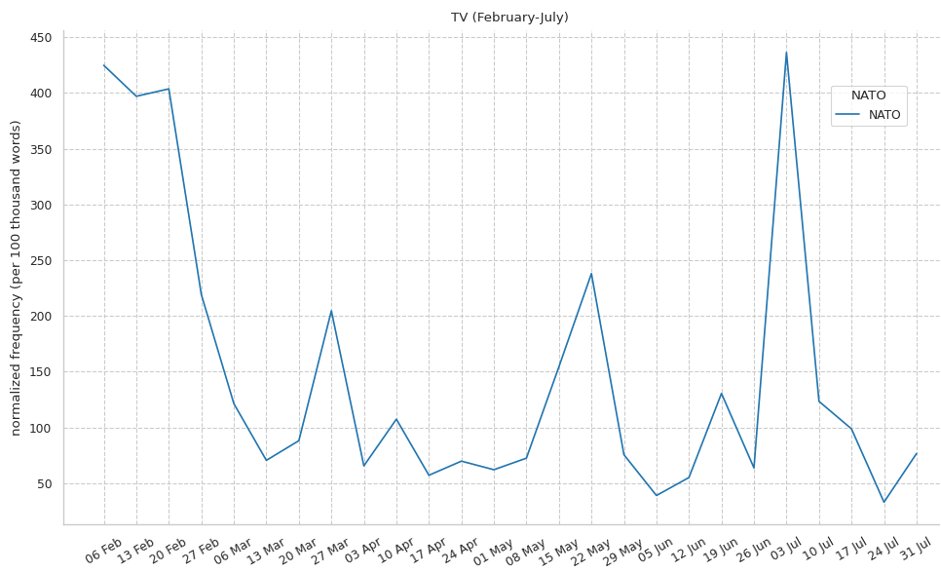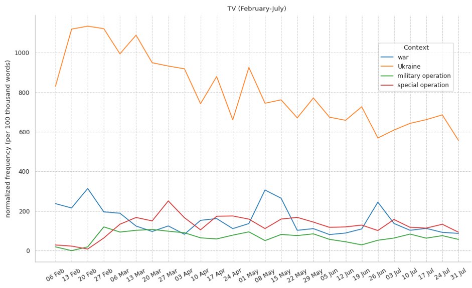 2/ ‘Demilitarisation’ and ‘denazification’ used by Putin to legitimise the invasion were frequently used on TV in the beginning of the war to be abandoned by mid-March.