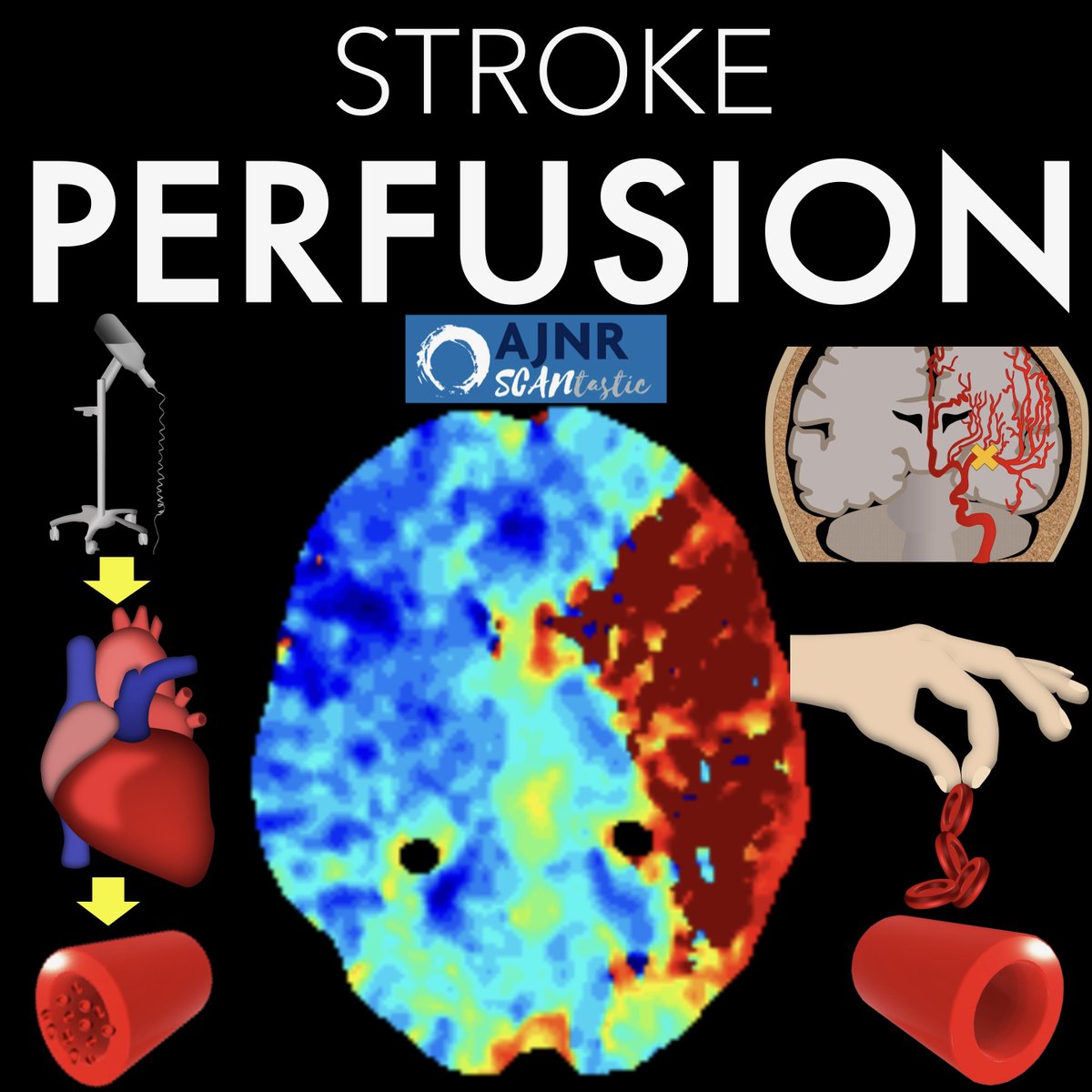 @TheAJNR 2/Perfusion imaging is based on one principle: When you inject CT or MR intravenous contrast, the contrast flows w/blood & so contrast can be a surrogate marker for blood.