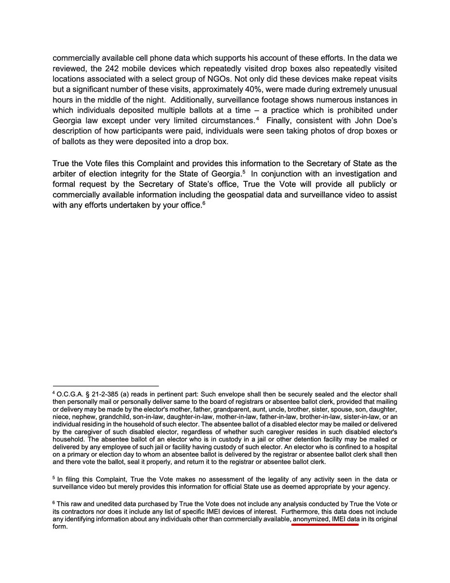 The data that True The Vote bought does not include device IDs (IMEIs).