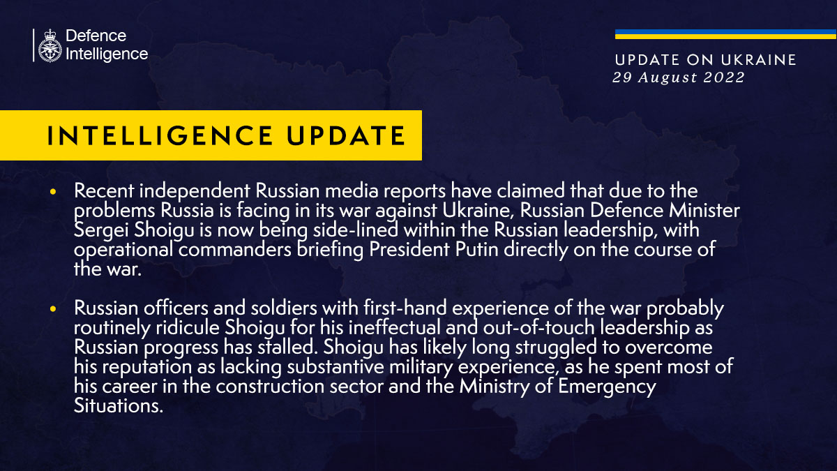 (2/4) Russian Defence Minister Sergei Shoigu is now being side-lined within the Russian leadership, with operational commanders briefing President Putin directly on the course of the war.