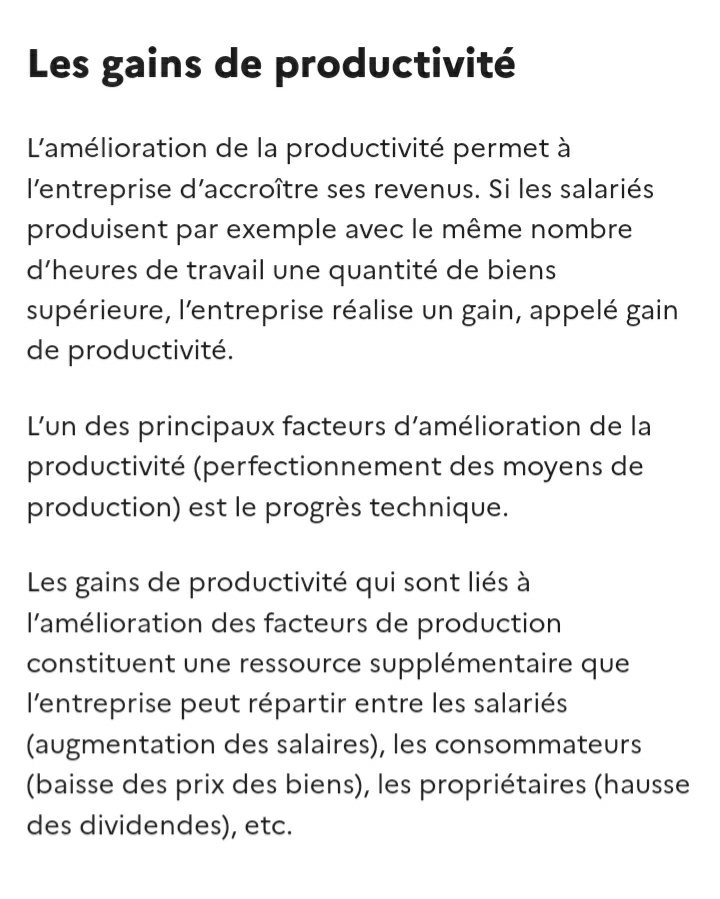 J'ai tenu à rajouter le mot "théoriquement", car en réalité depuis les années 80, les gains de productivité sont phagocytés par une finance prédatrice !