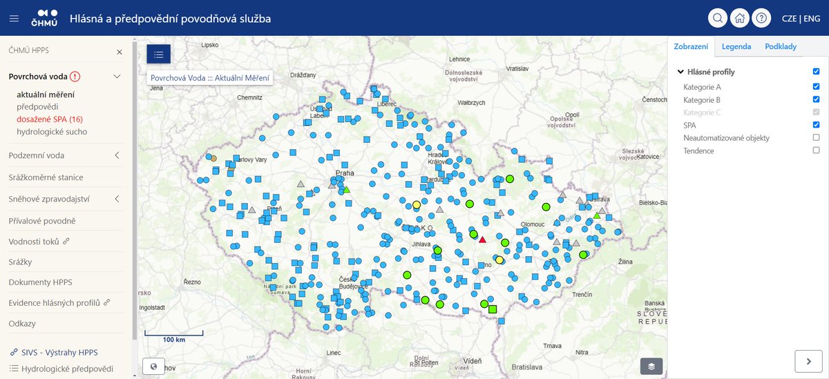 Základní stránkou určitě je tzv. „HPPSka“ () – Hlásná a předpovědní povodňová služba ČHMÚ. Zde najdete aktuální stav toků, především tedy aktuální vodní stav, průtok a informace o daném profilu. Body, které jsou vyznačeny obdélníčkem, jsou tzv. předpovědní profily, pro ty je po kliknutí k dispozici i odhad budoucího vývoje vodního stavu s vyznačením hranic povodňových stupňů. Ty pak poznáte podle barvy – modrá bez povodně, zelená I. Stupeň povodňové aktivity, žlutá 2. stupeň, červená 3. stupeň, růžovofialová 3. stupeň extrémní.