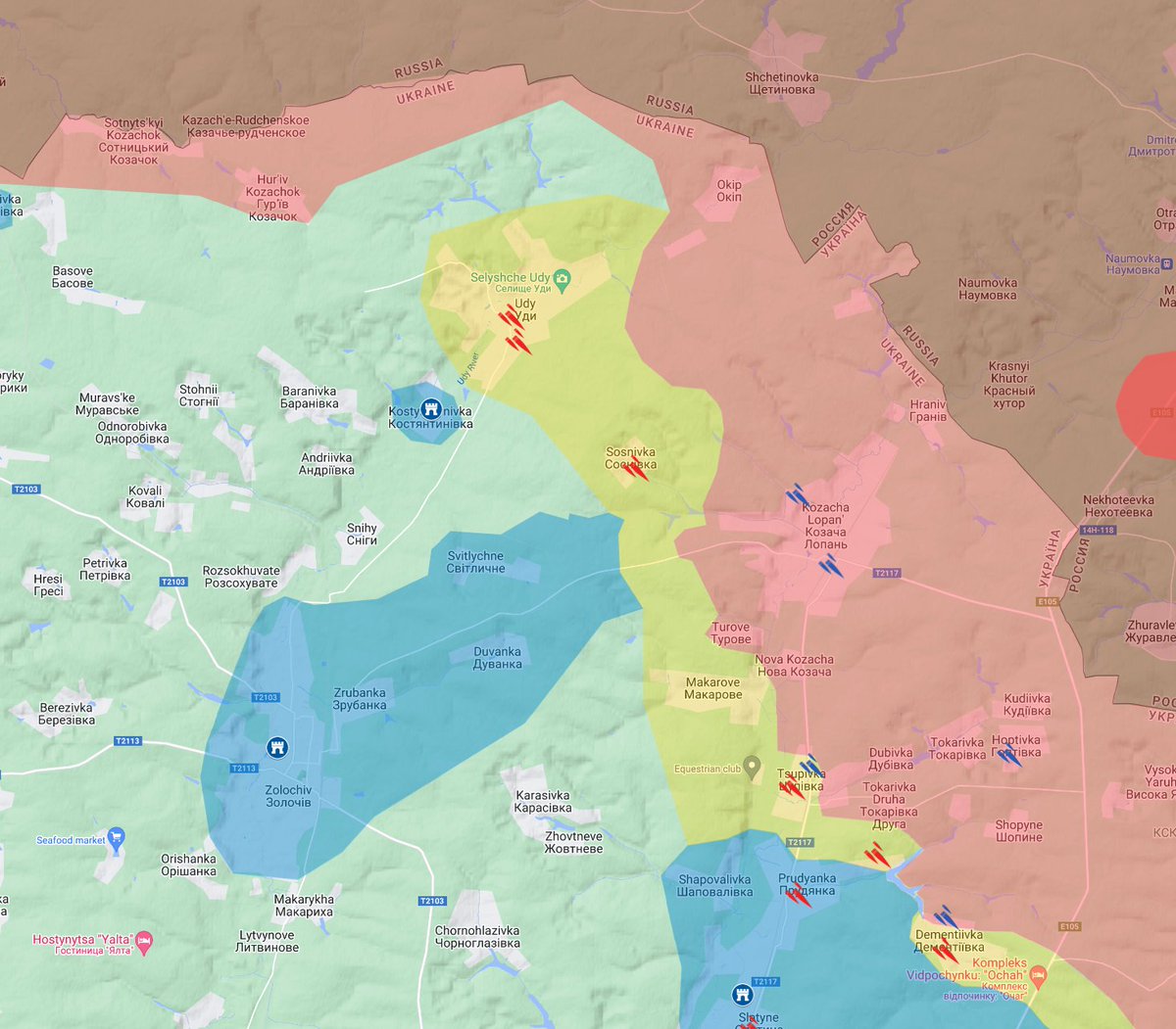 I do not know the current status of Udy or Sosnivka. Russian propagandists claim Russia captured both, but I have not seen any evidence. Videos emerged of Russia patrolling north through Udy with weapons at the ready.