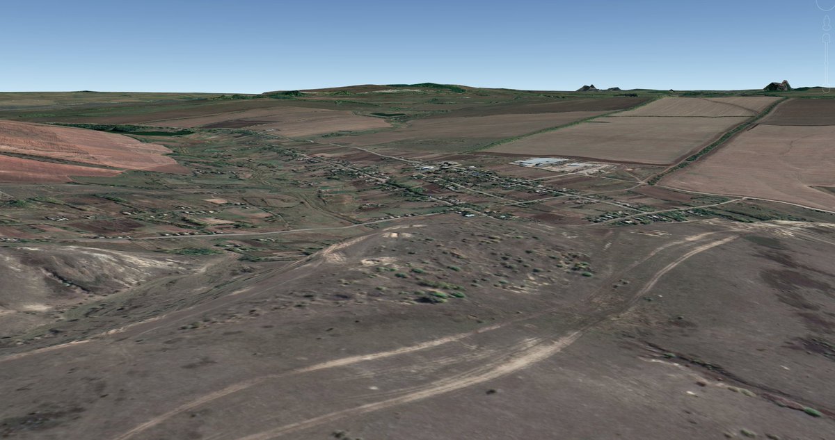 Top left: from above, top right: looking north at the town, bottom left: looking west into the town, bottom right, looking southeast from the high ground.