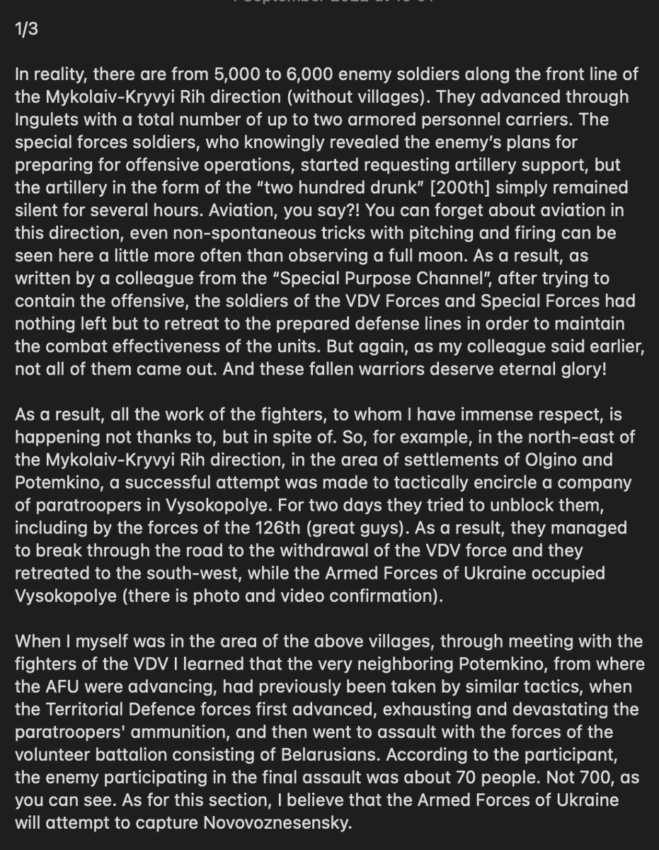 Below is a translation of Igor Girkin's latest update on the situation in South Ukraine. We encourage taking this report with a grain of salt as Girkin in our eyes has lost his credibility in recent months.