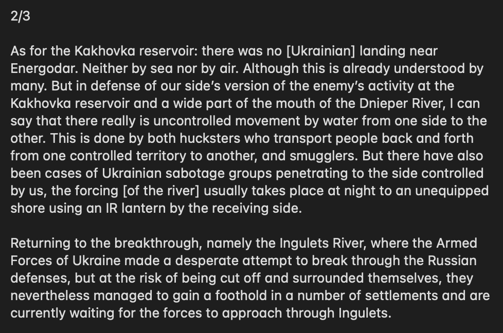 GREY ZONE then say that while the activity on the river near Kakhovka HPP certainly takes place, there was no amphibious assault which Russian propaganda channels have been screaming about in the past days.