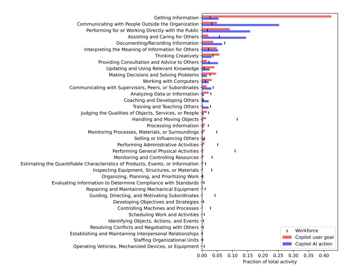 La metodología está bastante bien, es muy pragmática: analizan conversaciones (anónimas) de usuarios con Copilot y hacen un ranking de las tareas más solicitadas.