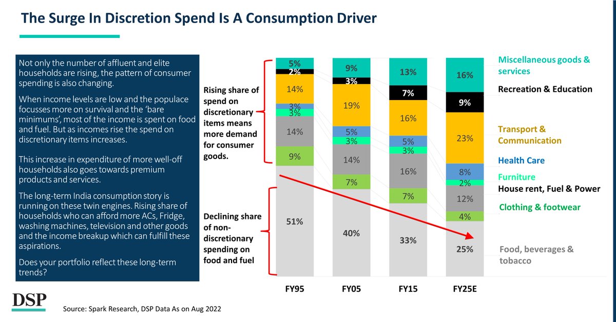 Consumption: The India story is alive and kicking. The changes which happen slowly and aren’t visible on a daily basis are powerful. Indian households are becoming more affluent.