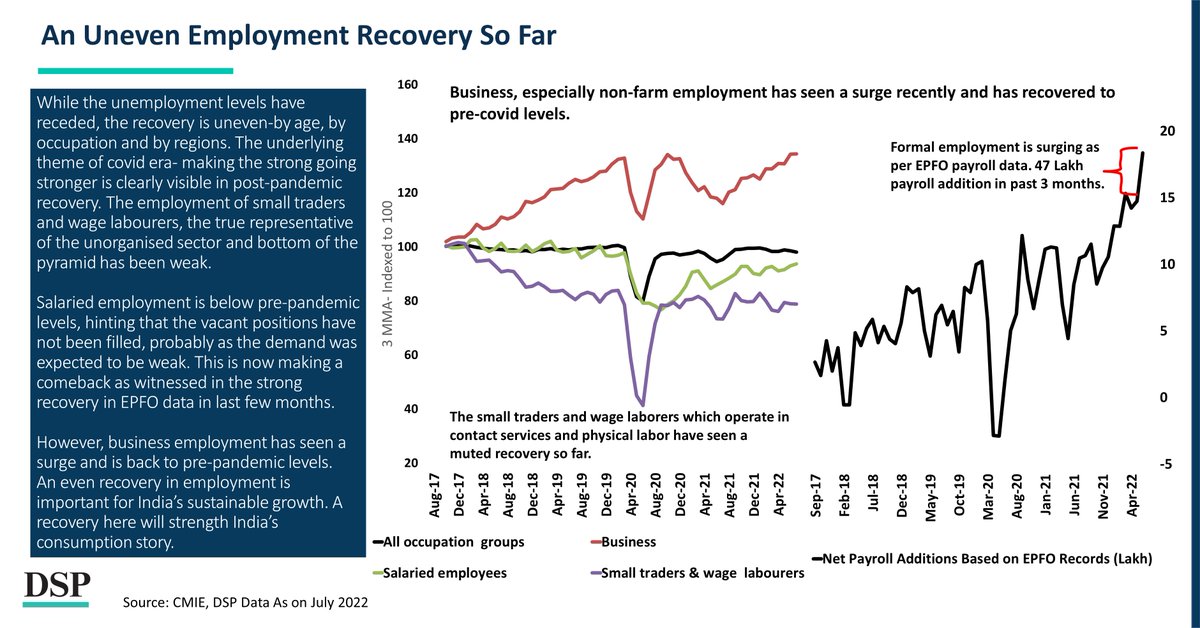 Employment hasn’t recovered as smoothly, but formal employment is supportive. For a resilient economic recovery, we need a strong employment situation.
