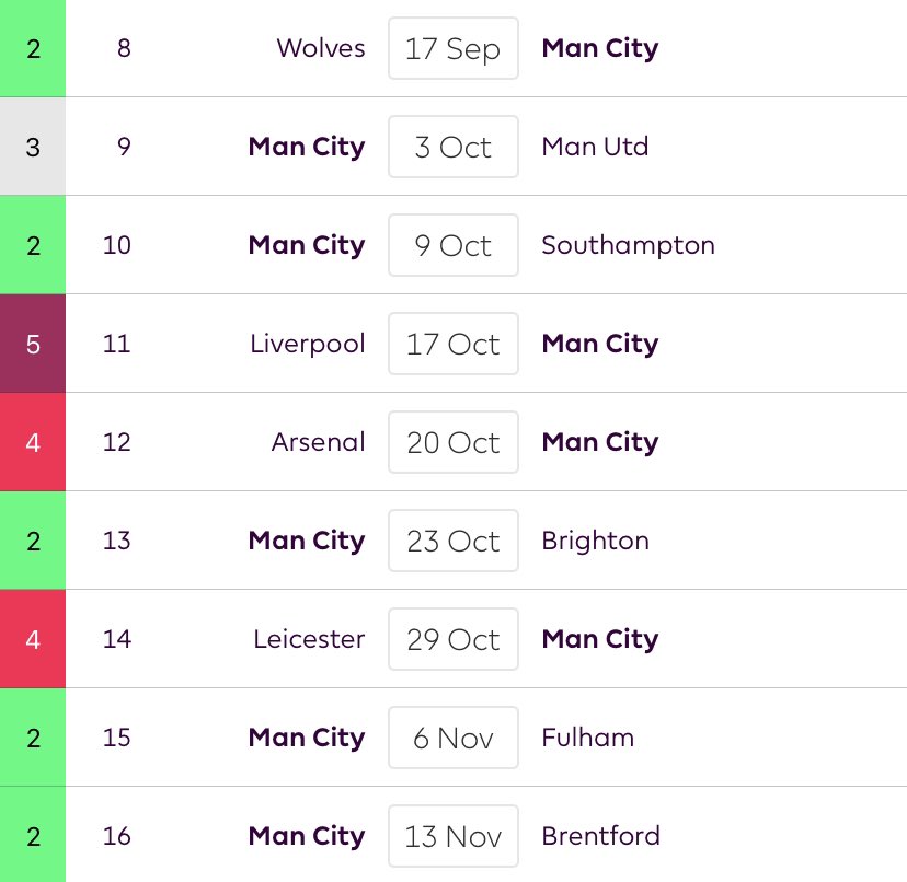 โข City face MUN, LIV & ARS between GW9-12
