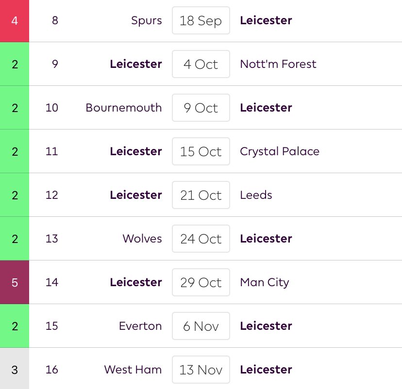 โข Despite Leicesterโs poor form, the fixtures are there to turn things around (especially from GW9-13)