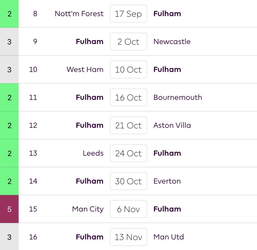 โข Fulham have one of the most favourable fixture runs in the league, from GW8-14