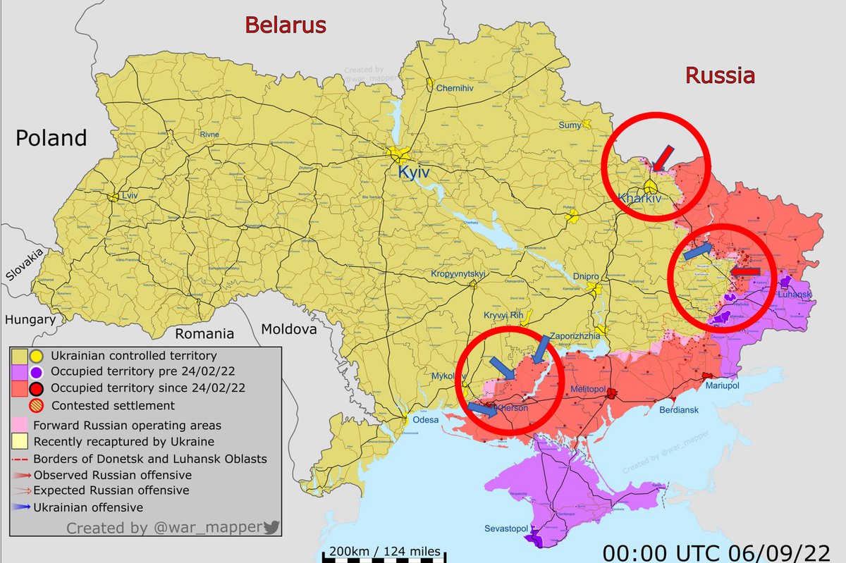Seit dem 29.8. führt die Ukraine eine begrenzte Offensive gegen die russischen Truppen auf dem südwestlichen Ufer des Dnipro. Der ukrainische Generalstab verhängte eine Informationssperre, auf aktuelle operative Informationen wird auch in diesem Thread verzichtet. 2/