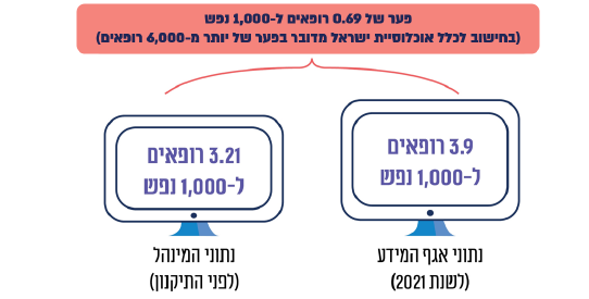 הבלאגן מתחיל בזה שאין אף גוף במדינה שקיים אצלו פילוח מדויק של הנתונים על כמה רופאים פעילים יש ובאיזה תחומים. גופים שונים כמו אגף המידע של משרד הבריאות ומינהל תכנון אסטרטגי במשרד הבריאות עושים כל מיני הערכות שהשונות ביניהן גדולה מאוד >>