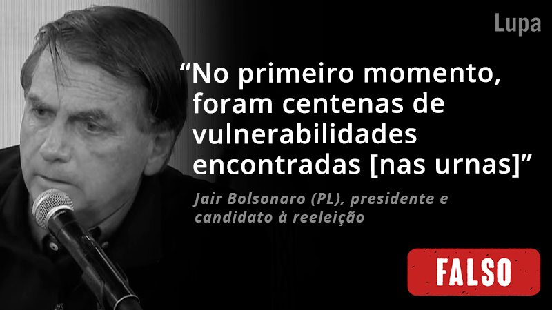 Não é primeira vez que @jairbolsonaro repete que as Forças Armadas encontraram vulnerabilidades nas urnas eletrônicas. Porém, jamais apresentou provas. Em fevereiro deste ano, ele disse que o Exército identificou "dezenas de vulnerabilidades", mas não apontou quais seriam.