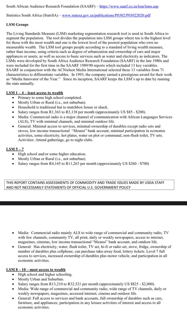 Shoprite Holdings segments the market into the following Living Standards Measure (LSMs);