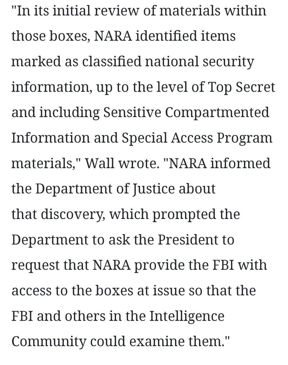 NARA sparked the DOJ probe that led to the the FBI search of MAL when staffers found classified docs in presidential records retrieved this year
