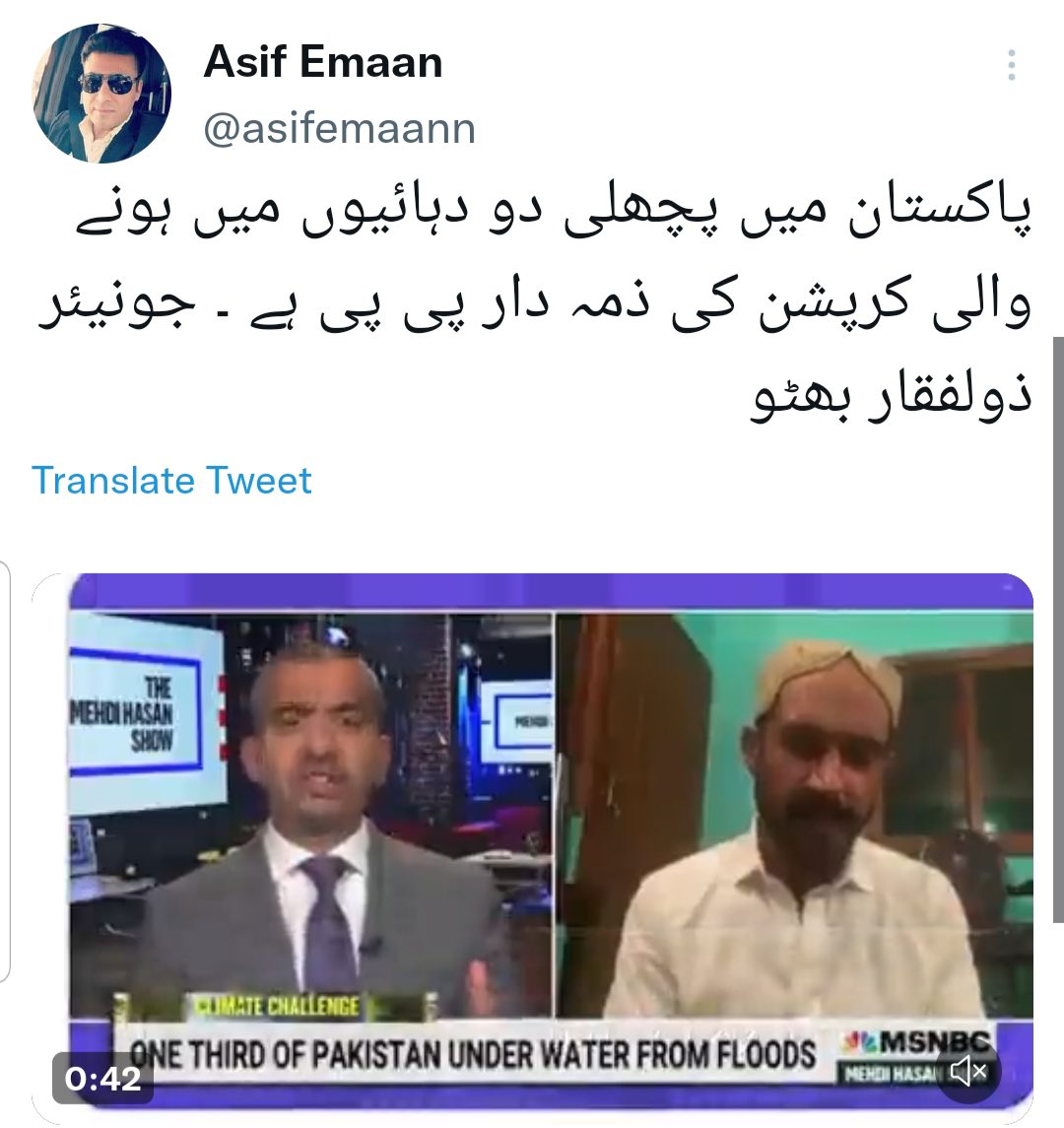پاکستان میں سیلاب کی حالیہ تباہ کاریوں کے فوراً بعد سوشل میڈیا پر ایک تصویر وائرل ہوئی جِس میں @BhuttoZulfikar سندھ کے کسی متاثرہ علاقے میں بغیر پیرہن شلوار گھٹنوں تک چڑھائے غرباء کی امداد میں مصروف نظر آتے تھے