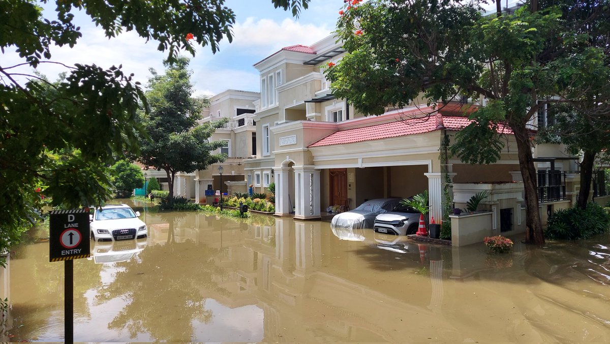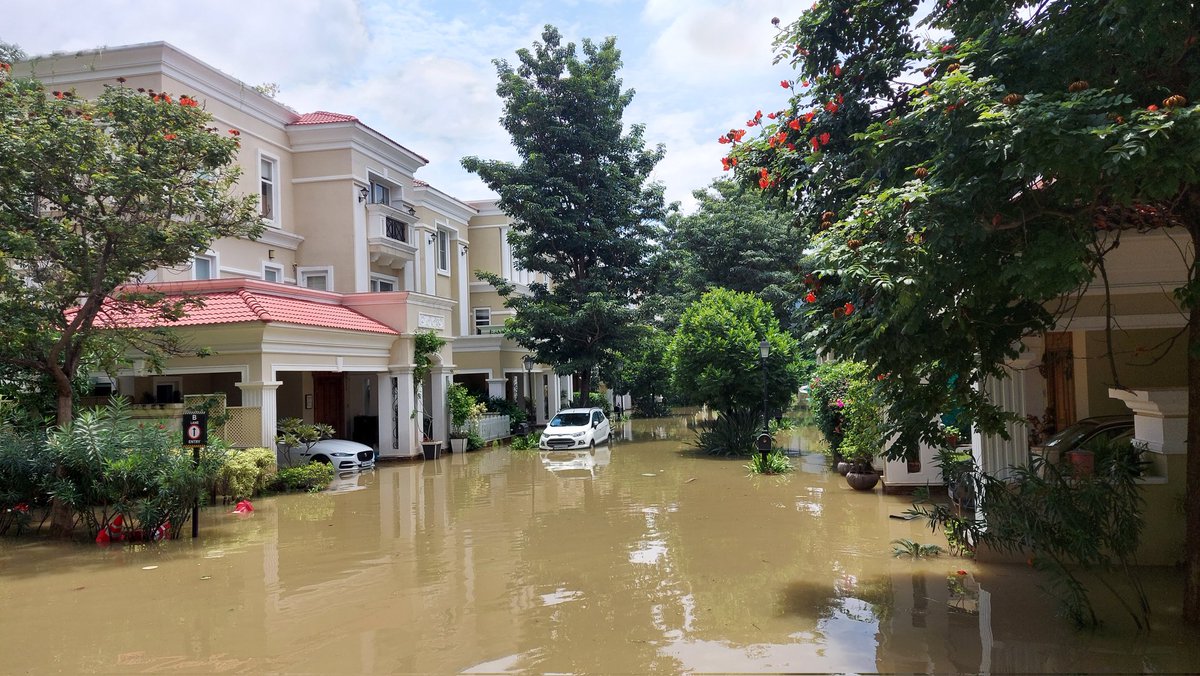 🧵Gated communities on and off Yemalur Main Road, near HAL, east Bengaluru turn into ghost towns; residents flee, hundreds of luxury cars submerged