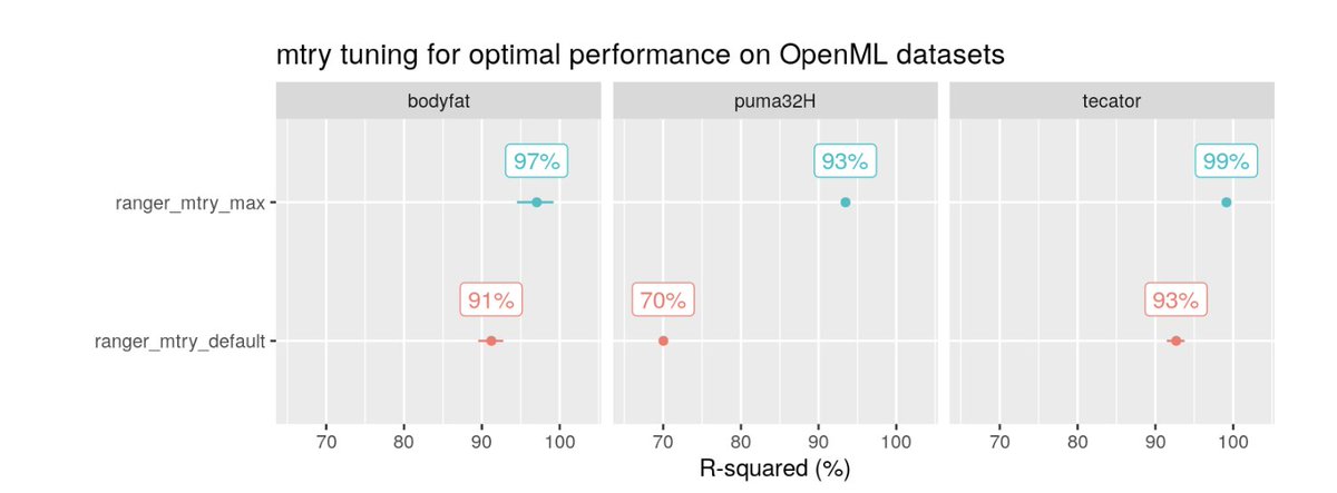 [2/6] The plot above also nicely highlights one of my favorite points when talking to collaborators: If you use RF, you will often get good out-of-the-box performance! I am positively surprised that this is nowadays true for XGBoost as well!