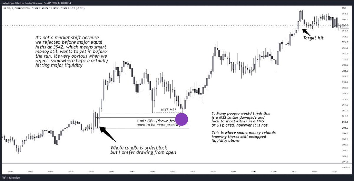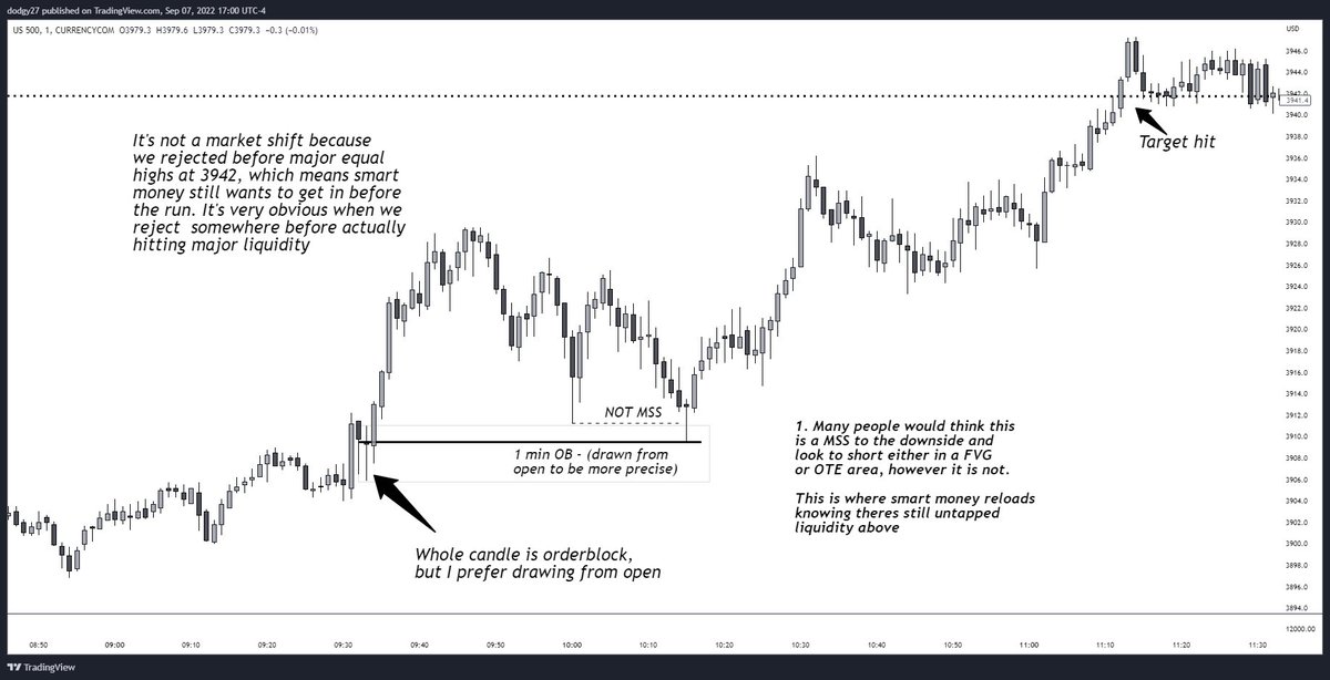 PLEASE READ! The most important thing you must understand about this setup that I currently have almost a perfect win rate with is only when the liquidity is equal highs or lows, not single swing highs and lows. Read both these chart annotations then read the next reply…