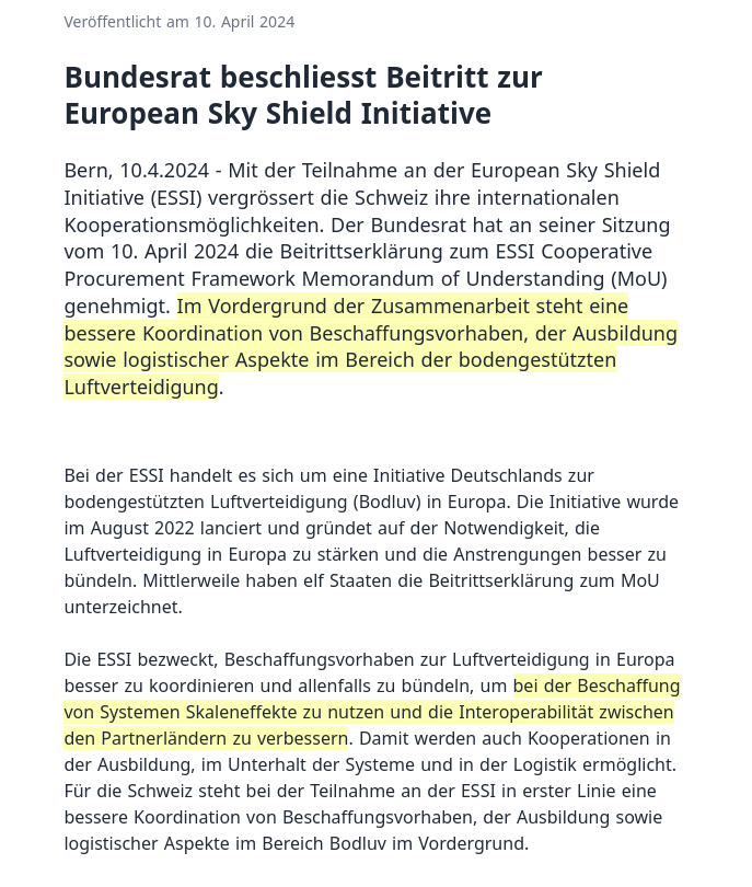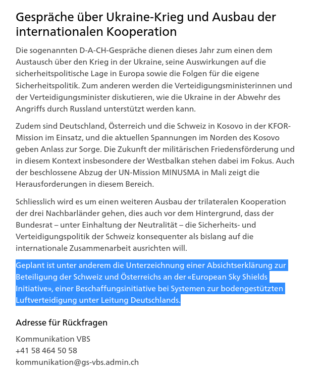 Das @vbs_ddps versucht nach wir vor, das Thema #SkyShield unter dem Radar zu halten (haha) und erwähnt es nur so "en passant". So wichtig muss es also nicht sein, hmm? 🙃