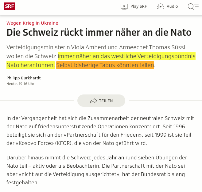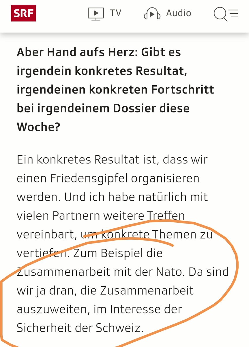 Markus Mäder und @Violapamherd sollten endlich Klartext sprechen und zugeben, dass sie keine Zusammenarbeit sondern eine NATO-Mitgliedschaft anstreben! srf.ch/news/internati…