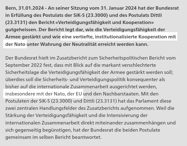 BR @Violapamherd erwähnt natürlich die Schweizer Neutralität, allerdings nur pro forma. Was für eine Heuchelei... vbs.admin.ch/de/nsb?id=1006…
