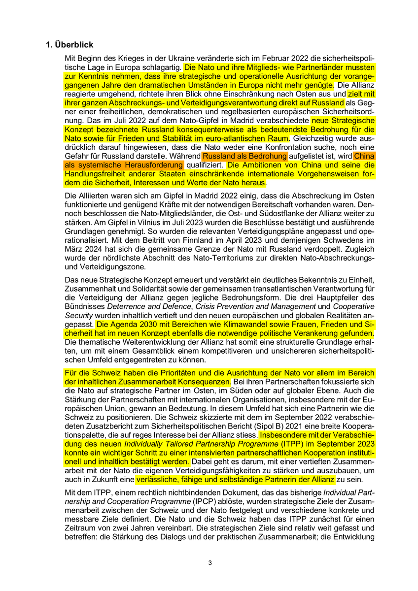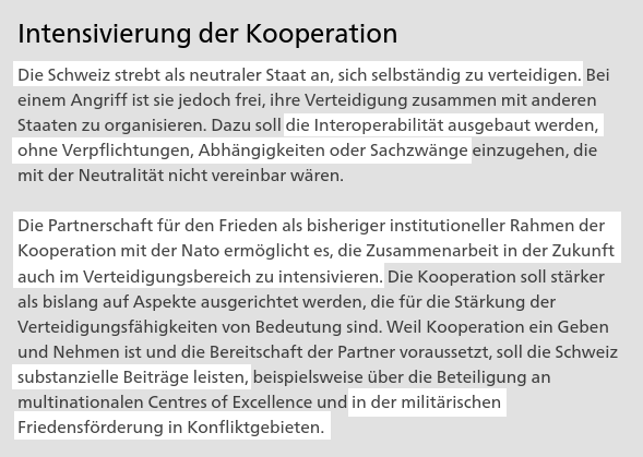 Die Zusammenarbeit mit NATO und EU soll kompatibel mit der CH-Neutralität sein.