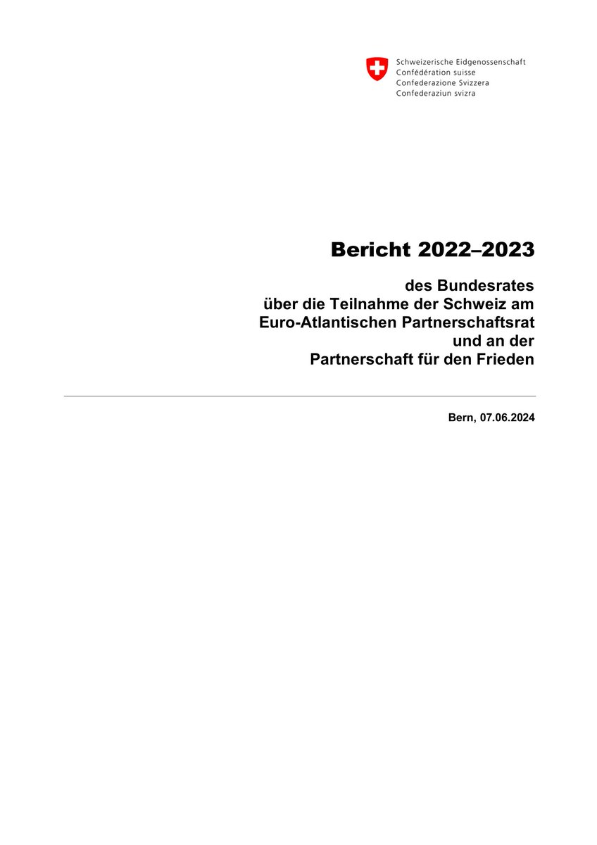 68/ "Der Bundesrat hat in seiner Sitzung vom 7. Juni 2024 den Bericht 2022–2023 über die Teilnahme der Schweiz am Euro-Atlantischen Partnerschaftsrat und an der Partnerschaft für den Frieden gutgeheissen"