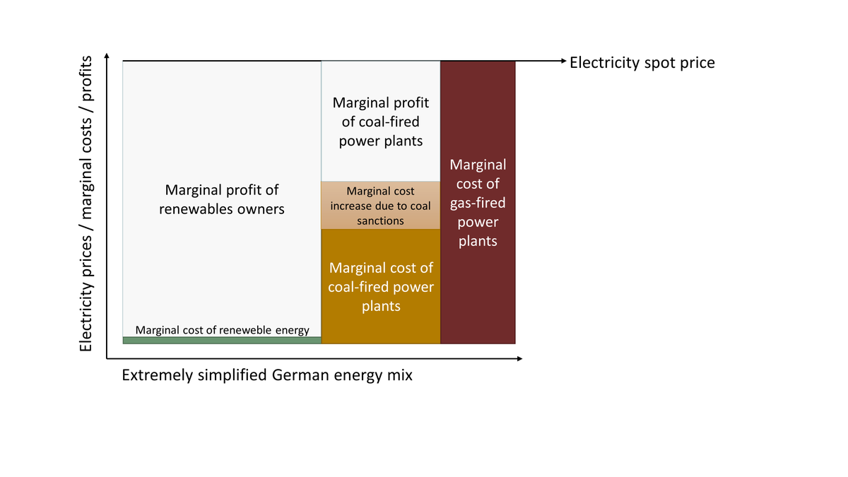 2/ Der Strompreis ist ein Marktpreis, d.h. er wird von dem Anbieter mit dem höchsten Grenzkosten bestimmt. Aktuell sind das Gaskraftwerke. Die Betreiber von Erneuerbaren/Kohle/Atom etc. können sich freuen, weil es ihre Margen erhöht.