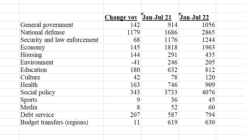11/11 I expect war costs to go after July, because arms manufacturing has ramped up (there are some signs of it in production statistics - another story). As long as MinFin publishes total spending figures, it will not be hard to figure out the federal budget's war spending.