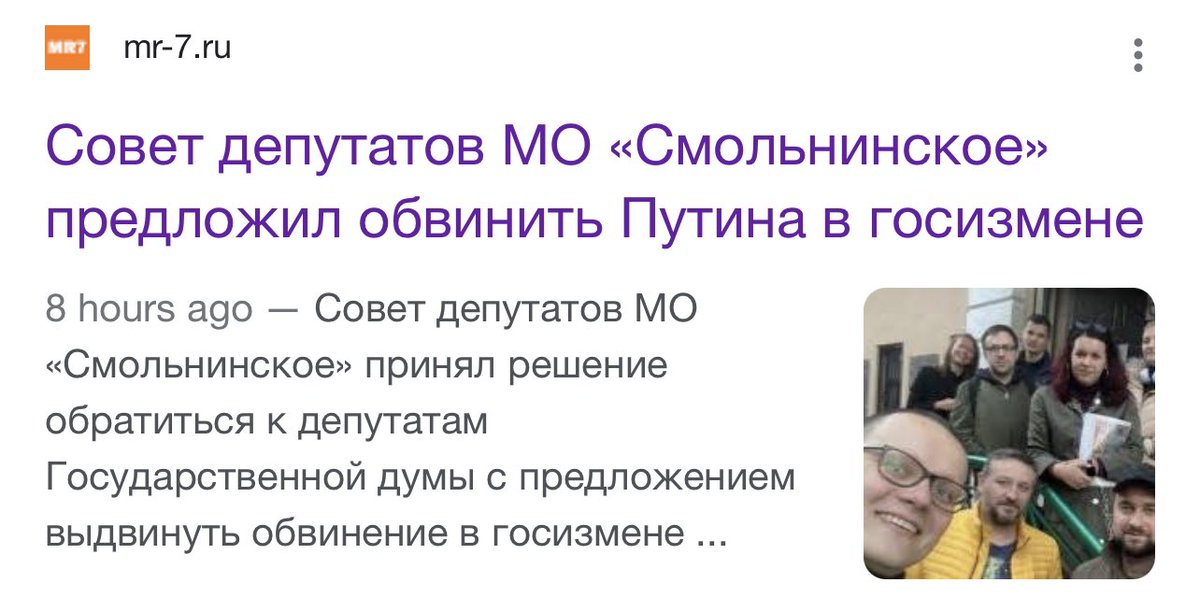 St. Petersburg municipal deputies of the Smolninskoye district are planning to send an appeal to State Duma in coming days with a proposal to accuse Putin of high treason because of the war in Ukraine theins.ru/news/254850