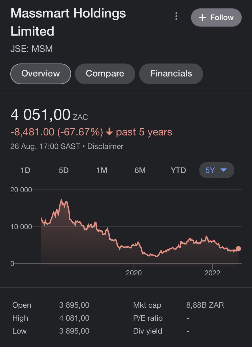 Massmart could get delisted from the JSE. Long overdue honestly.