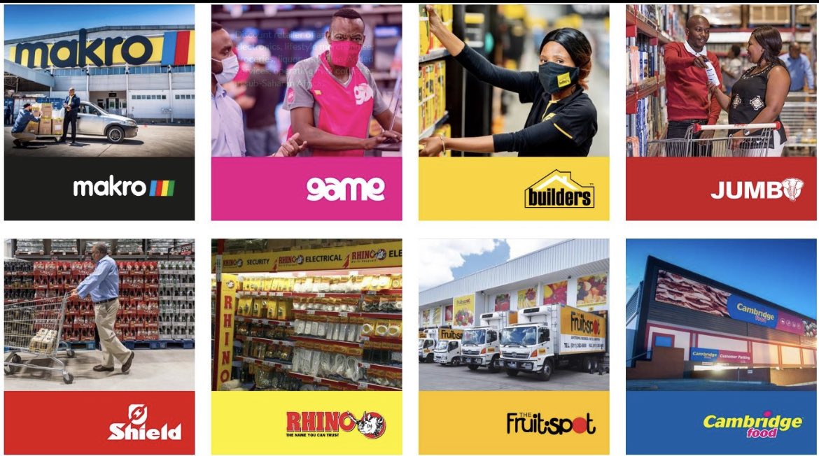 Massmart is the owner of Builders Warehouse, Cambridge Food (some have been sold), Game, Jumbo Cash & Carry, Makro and Shield.