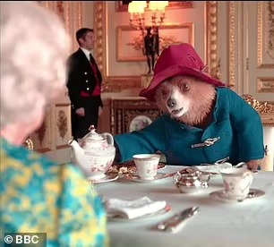 The Queen and Paddington Bear, two much-loved British institutions, were shown taking afternoon tea together at Windsor Castle