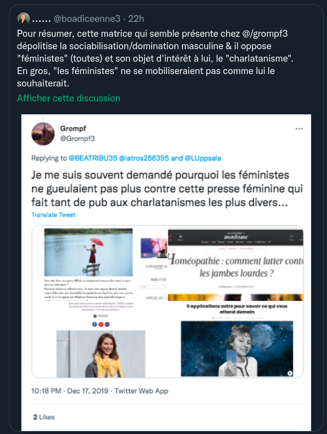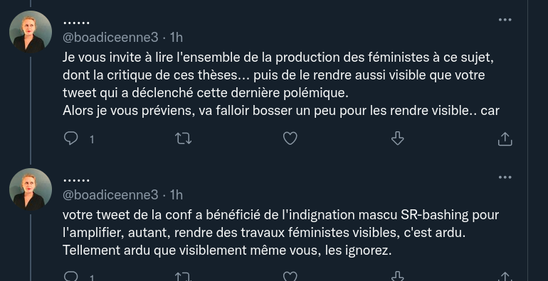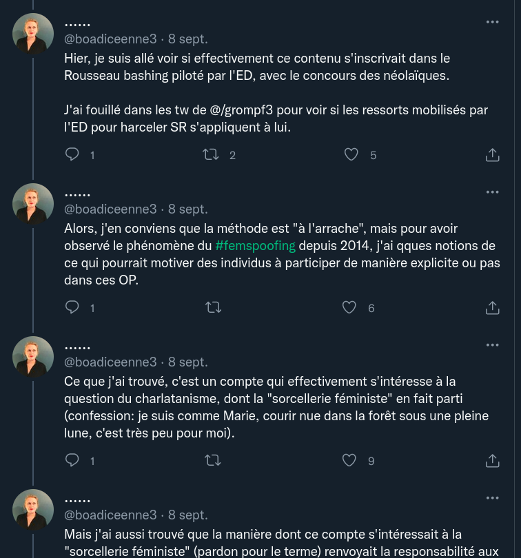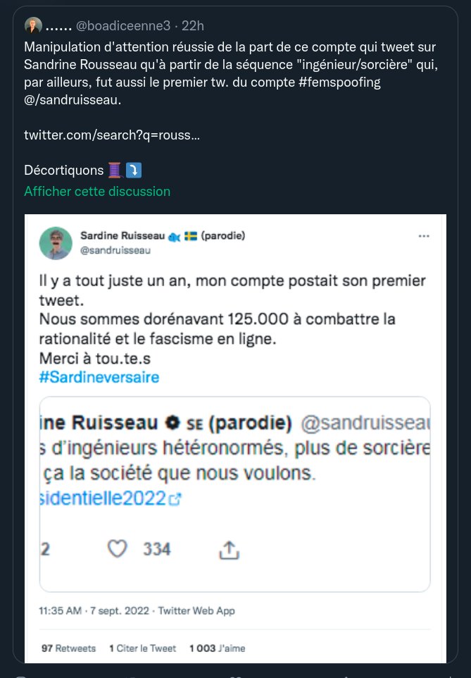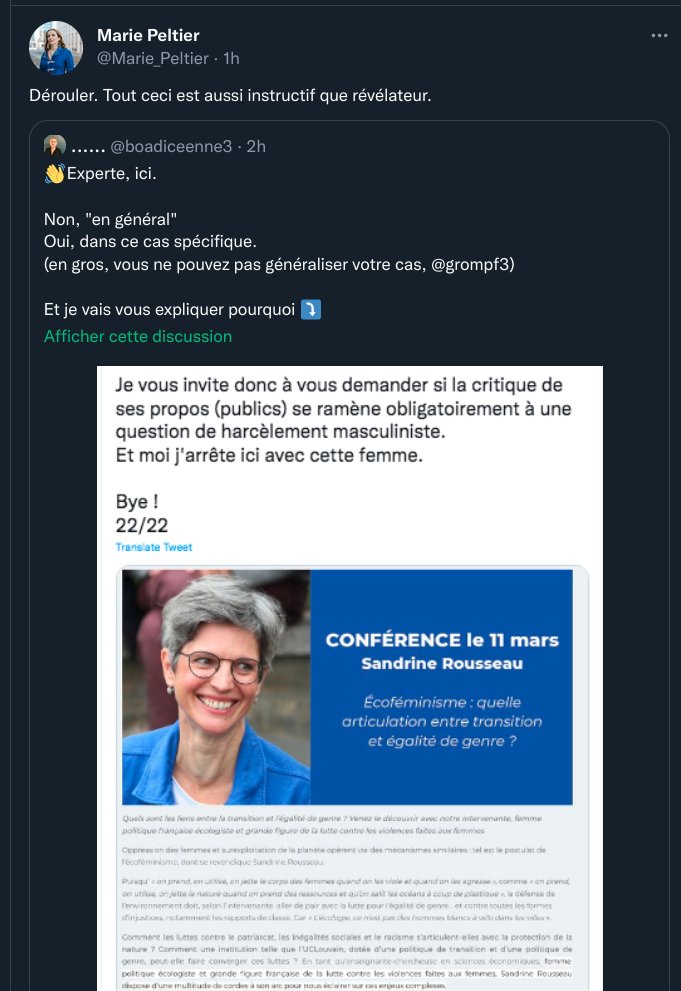 Et pour ce qui est de ma fixation sur S Rousseau, je vous laisse fouiller dans mon compte. J'ai débunké pas mal de trucs et il me semble que les hommes sont très largement majoritaires.