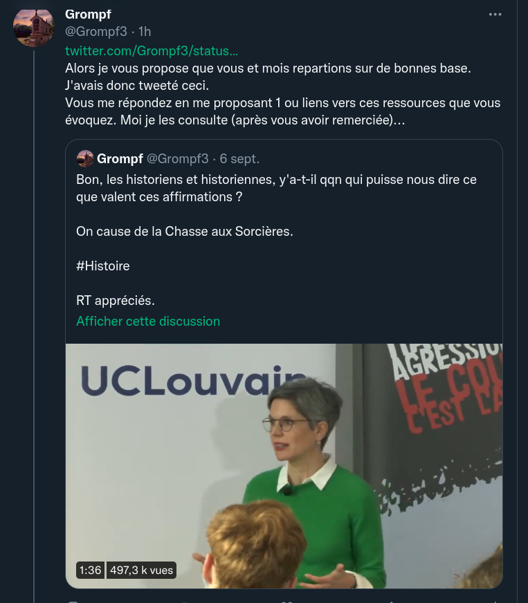 Précision : Je n'étais pas tombé par hasard sur cette vidéo. Un twittos, qui voulait me montrer que le discours de SR sur les sorcières et les ingénieurs avait une base cohérente (donc qqn qui était plutôt à la soutenir, en résumé), me l'avait montrée cette vidéo...