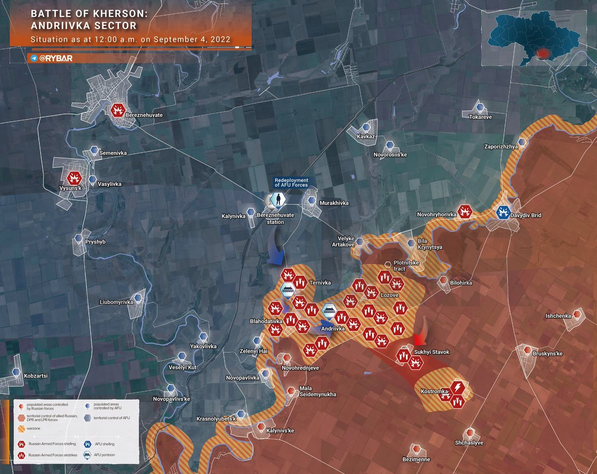 After getting cut off, Ukrainian forces managed to either recapture or create a new bridgehead around Andreevka, and they keep pouring reinforcements into the area, by now mostly on foot. 24/7 Russian airstrikes & artillery, Sukhoy Stavok described as "one huge graveyard".