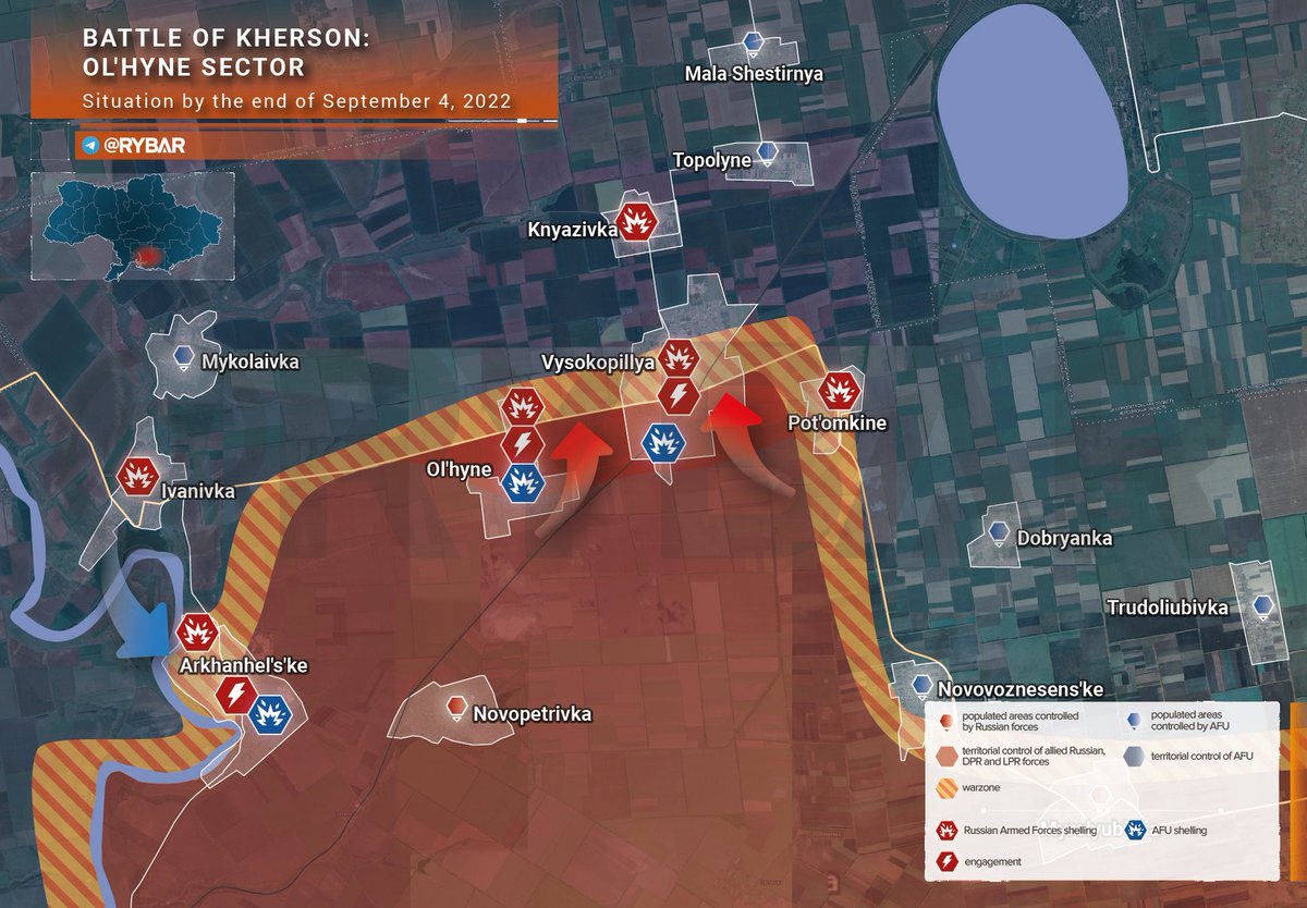 Small update on the Kherson front (didn't have the time to follow everything today). After Ukrainian forces managed to semi-encircle the Russian forward positions at Vysokopolye, they have been pushed back again & Russian troops have reversed most or all Ukrainian gains there.